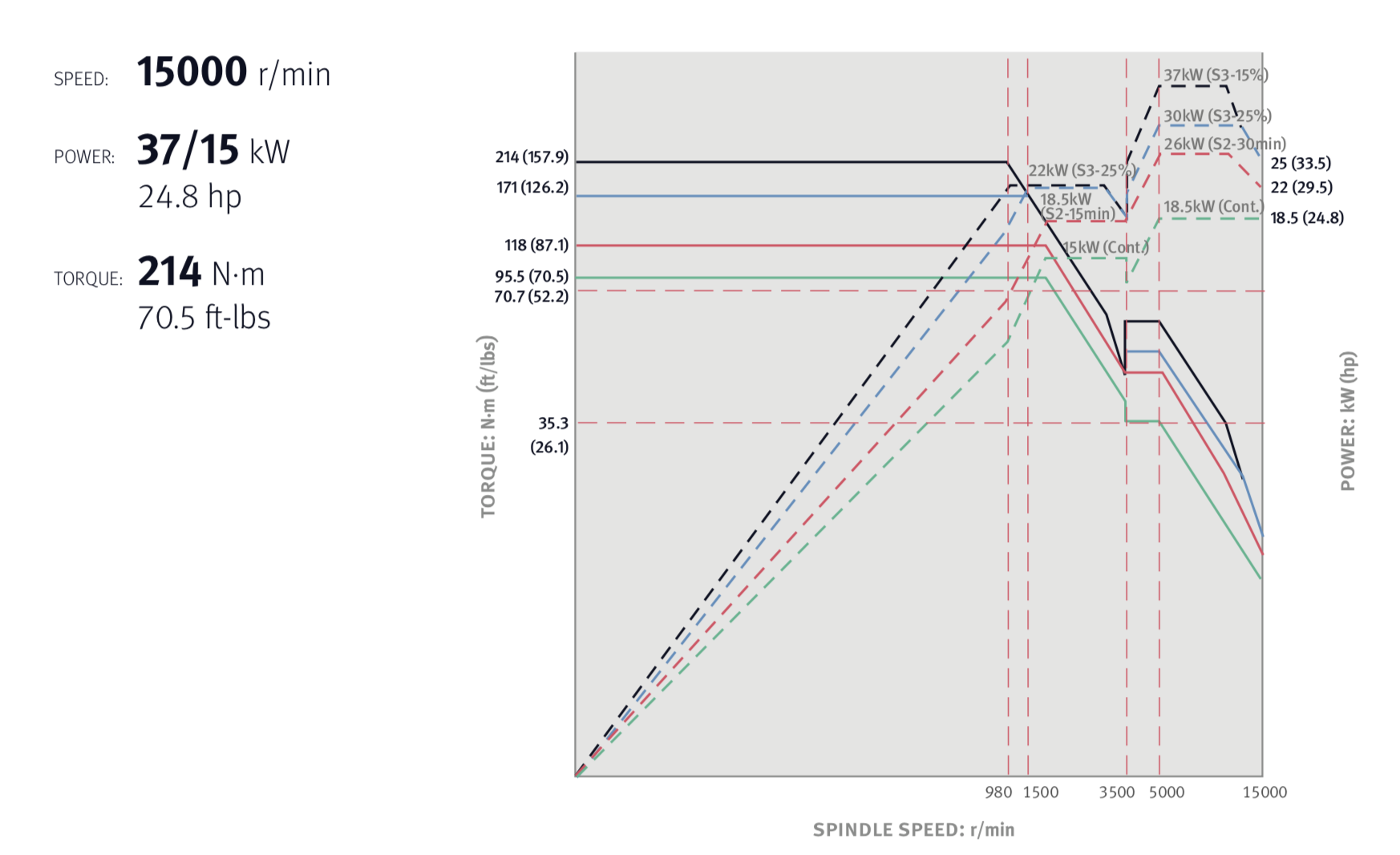- Verrà montato un elettromandrino da 15.000 giri da 37 Kw e 214 Nm di coppia potenza, il che lo rende perfetto sia per lavorazioni di finitura che per lavorazioni di semi finitura/sgrossatura, il tutto controllato termicamente in maniera fine con un condizionatore olio ed un sistema “DTSC” di sonde termiche per le varie compensazioni.